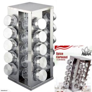 Spice Rack Stand Carousel Rotating Glass Round 20 Jars