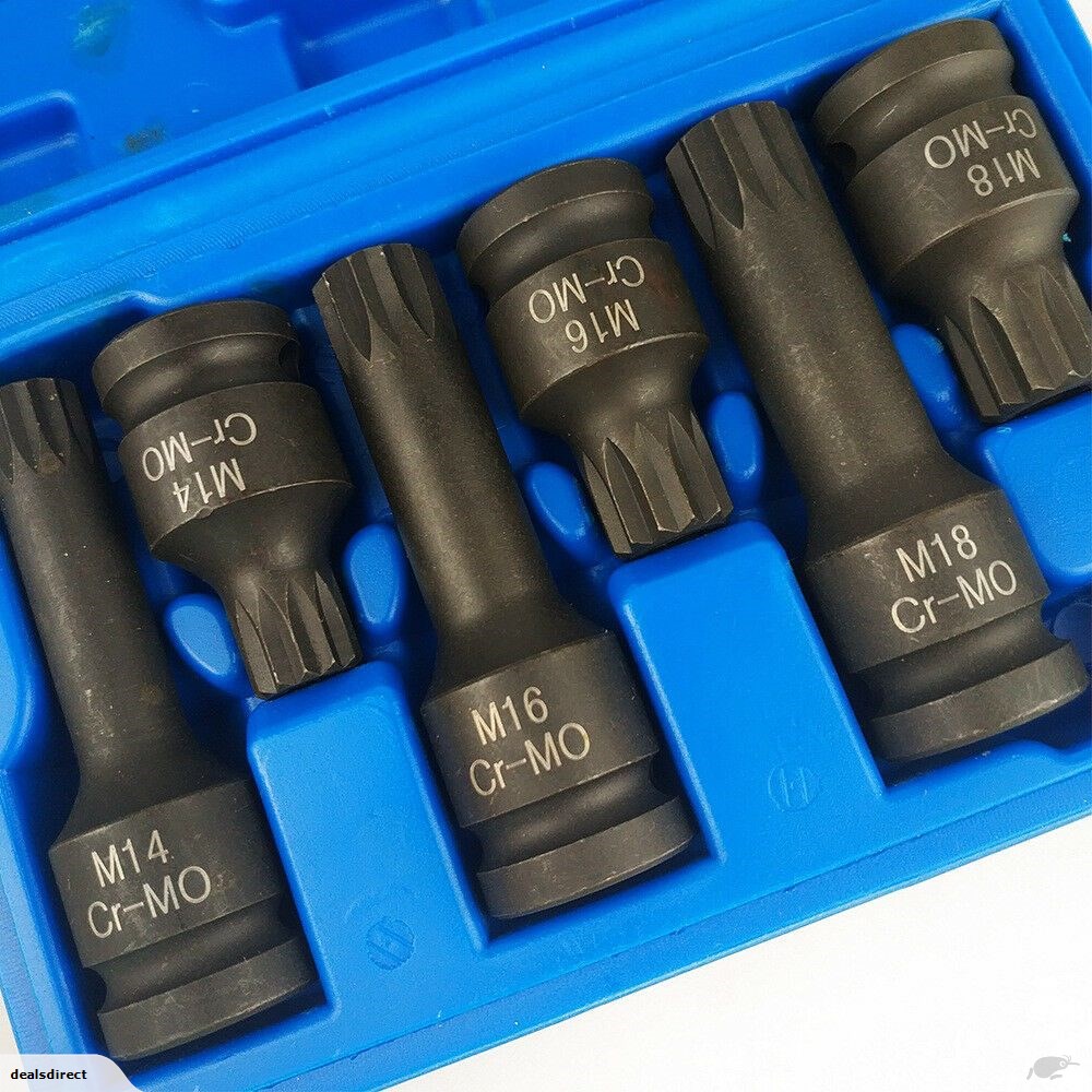 Socket Tool Set 1/2″ Drive Impact Spline Bit 6 Piece