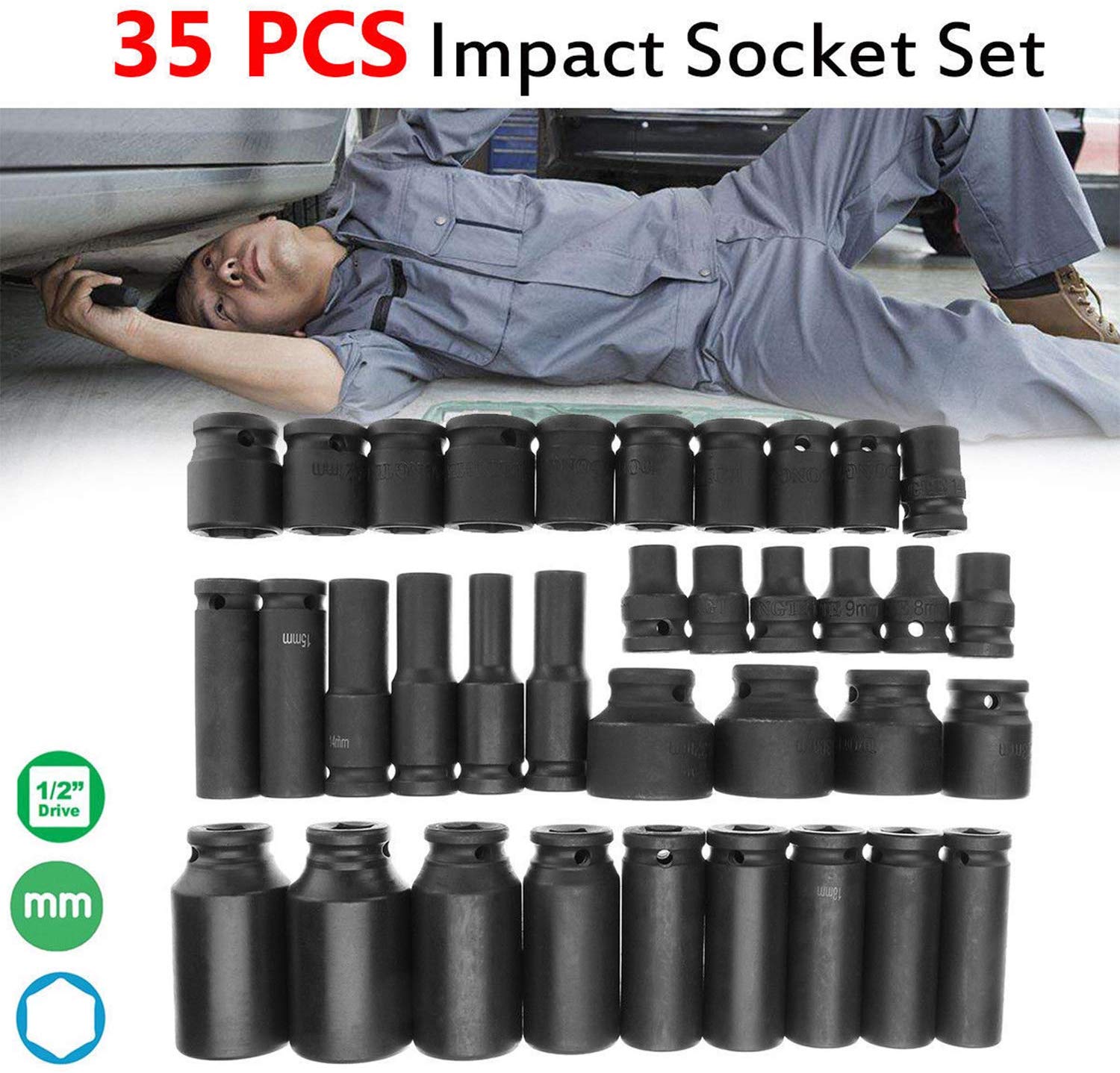 1/2” Dr Impact Socket Set