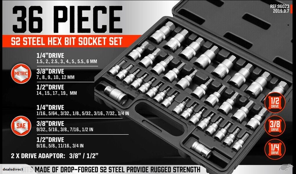 36pcs S2 Steel Hex Bit Socket Set