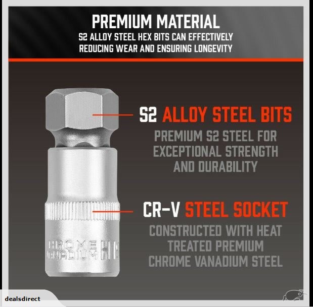 TWIST-DIMINISHED BITS: Hex bits made of drop-forged S2 steel provide rugged strength and durability to unfasten intractable screws; bit ends are sized and chartered for precise fitting and reducing fastener wear-out
