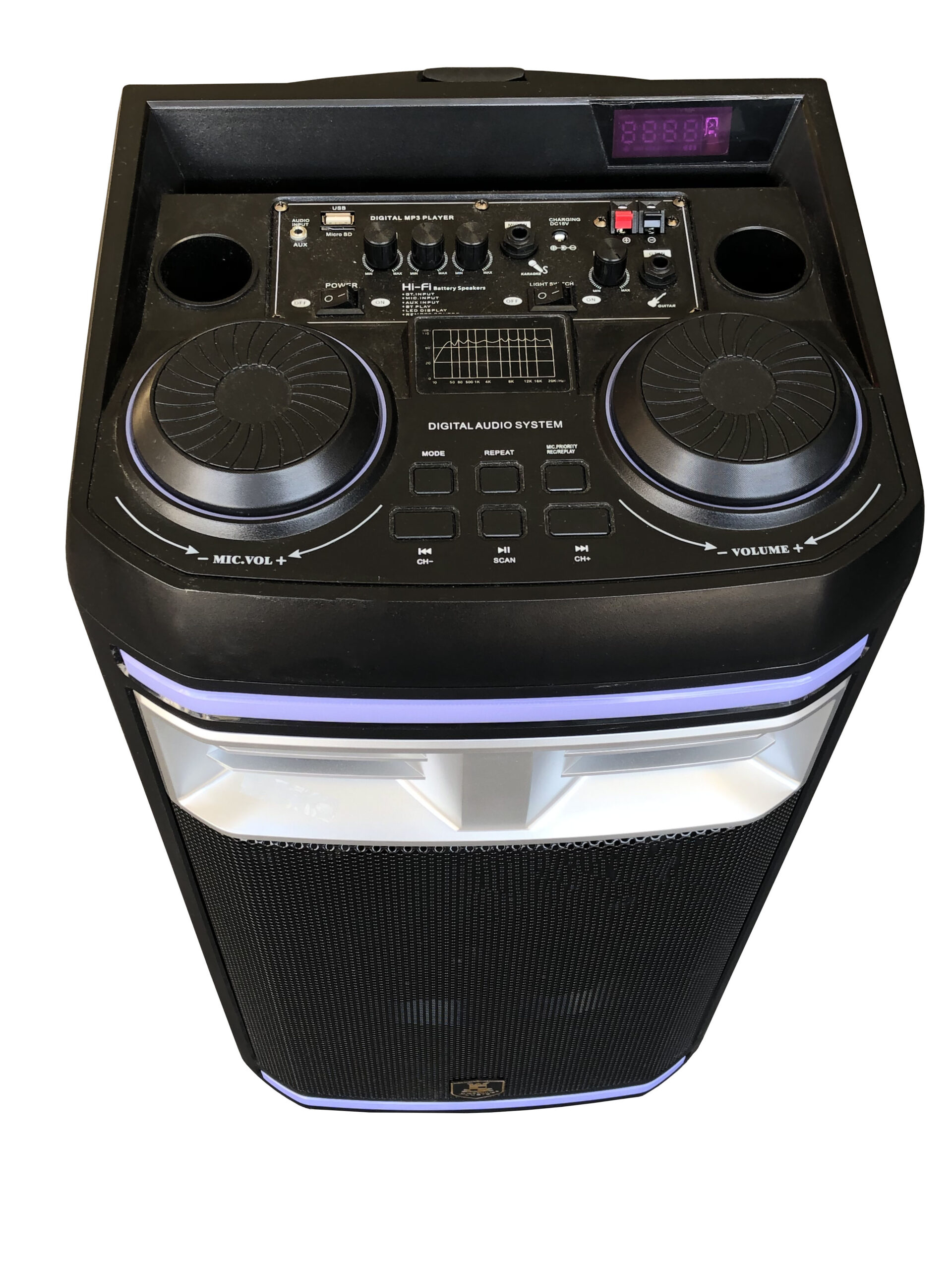 – Flashing lights on speaker grills and top knobs