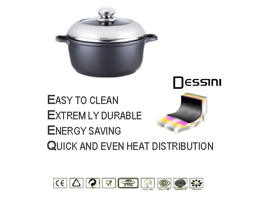 Dessini Ceramic Cookware Set Die Casting ceramic coating and aluminium core.