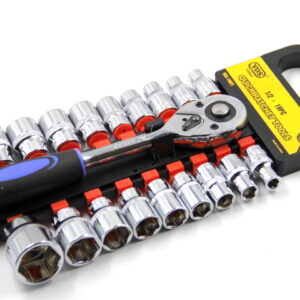 6point Sockets: 10mm, 12mm, 13mm, 14mm, 15mm, 16mm, 17mm, 19mm, 21mm, 24mm, and 1/2″ Sliding-T-Bar