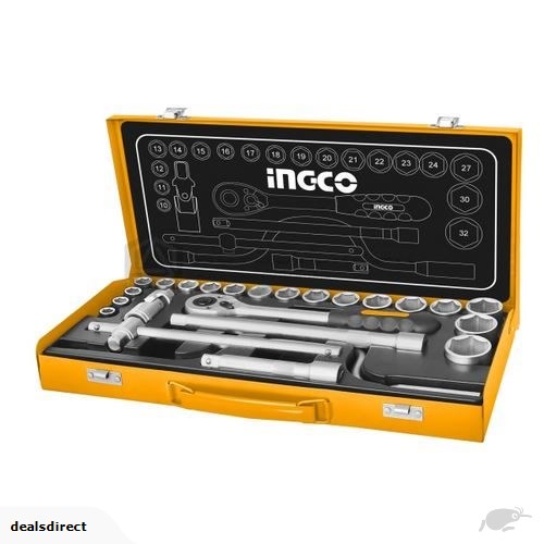 INGCO Socket Set 1/2″ Chrome-vanadium 10-32mm 24pce