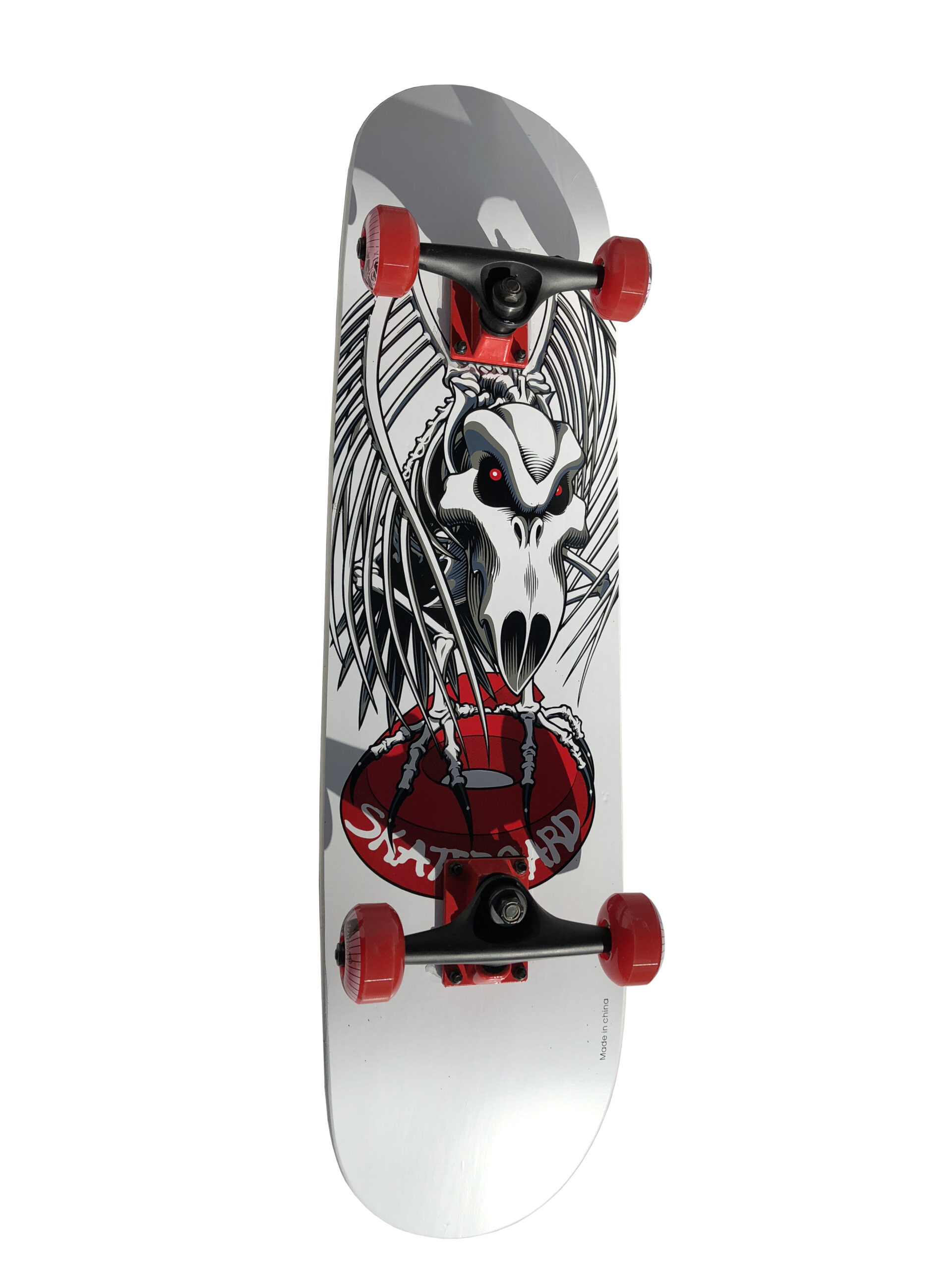 Skateboard RED AND WHITE BIRD SKELETON DESIGN