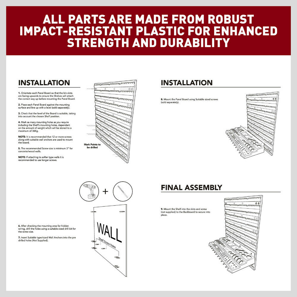 Wall Mount Shelve Tools Organizer 52pc